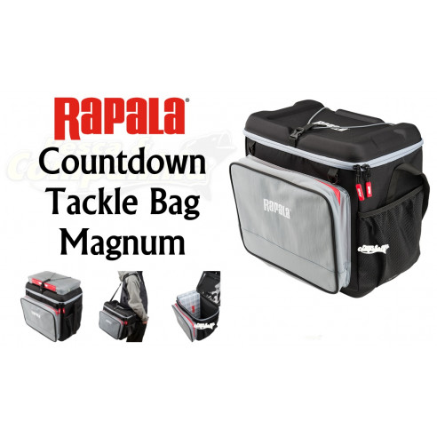 | When you need maximum capacity, reach for the CountDown Tackle Bag Magnum. Featuring: a waterproof material with molded EVA waterproof bottom and lid, tackle tray holder on lid with zippered see-through pocket, double front pocket with quick access tool attachment + d-rings + zippered line feeder pocket and organiser pockets, padded adjustable shoulder strap that can be adjusted into a top handle, accommodates 7 internal 3700 size tackle trays with space for 1 on top.