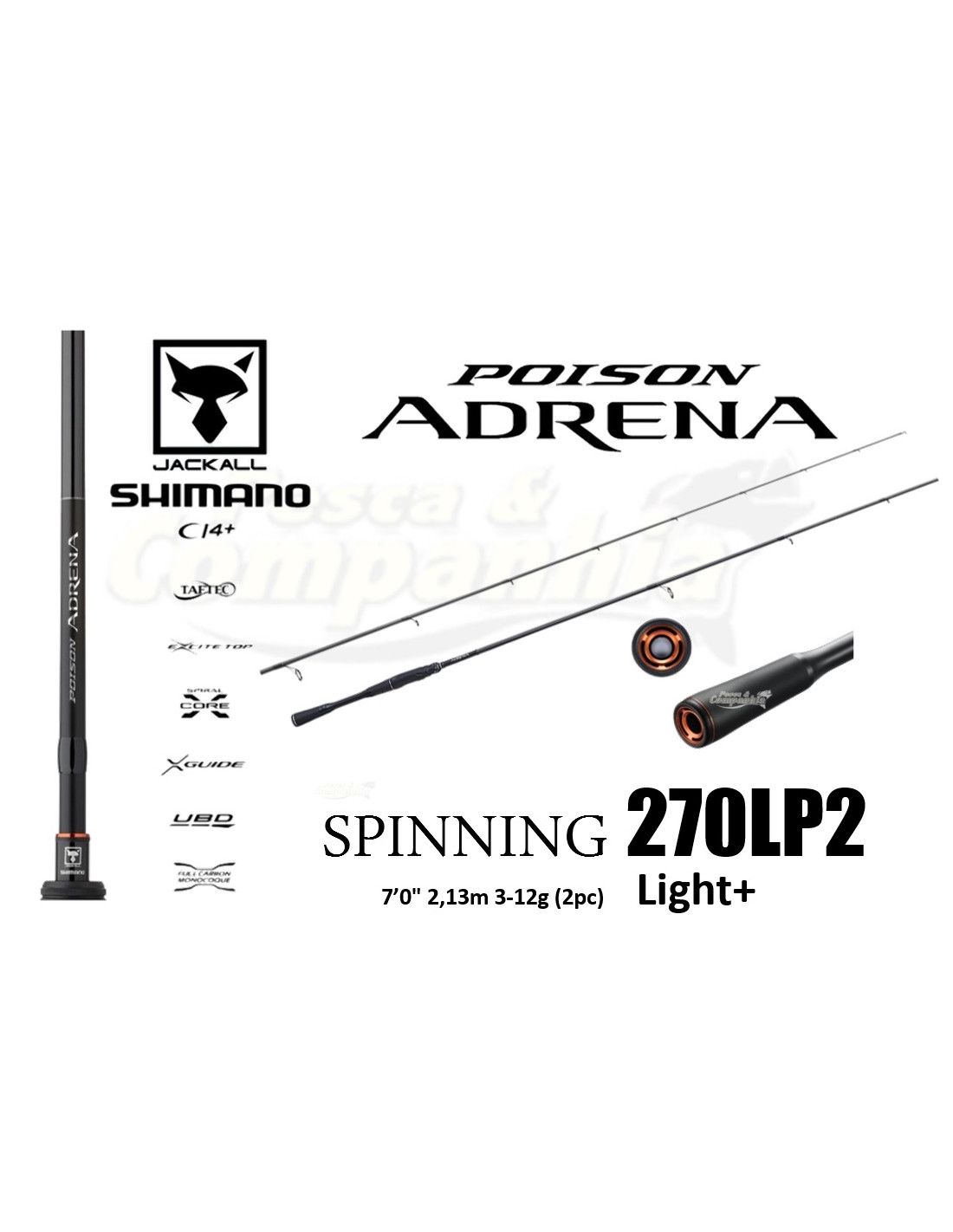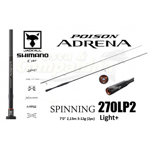 Poison Adrena is Shimano’s ultimate high-end JDM rod range. Combining the most advanced Shimano carbon technology, with JDM philosophy, refinement and scintillating actions, the Poison Adrena also benefits from the latest UBD (Ultimate Blank Design) technology to produce unparalleled performance. If you don’t, or won’t accept compromise in your fishing gear, you’ll immediately be attracted to the sensational Poison Adrena. It’s Shimano’s flagship spinning range, which say’s a lot, and you’ll immediately understand why when you see and feel this remarkable work of art. The lightness, sensitivity and hidden power are stunning, but it‘s the rods ability to recover so quickly when fishing that really stands out. Beautifully crisp and reassuringly predictable when casting, working lures and playing fish, the Poison Adrena takes performance to a completely different level of excellence. Showcasing Shimano premium rod technologies, including the latest UBD (Ultimate Blank Design) philosophy, the Poison Adrena excels in all departments. The incorporation of Spiral X Core construction within the high modulus carbon blank provides the Poison Adrena with unparalleled strength, without sacrificing lightness, responsiveness or sensitivity. To further enhance performance a Full Carbon Monocoque handle, combined with an ergonomic Perfection CI4+ Reel Seat XT on casting models and Perfection CI4+ Reel Seat on spinning models, provides the ultimate lightweight ergonomic combination for maximum feedback. And as you would expect on a rod with such a high pedigree, Poison Adrena rods feature premium X guides to offer the ultimate in line management.