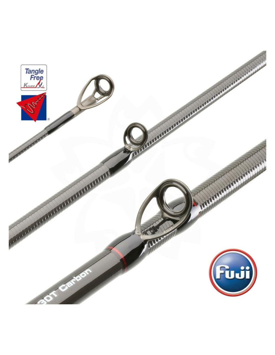 Thanks to the use of IM30T carbon fiber on their blanks, we've managed to reduce the rods' weight by up to 30% compared to similar models in this price range. These rods are impressive in terms of comfort, robustness, and sensitivity. To perfect this evolution, we decided to remain true to Sakura's DNA by equipping the RYOKAN FW rods with Fuji guides. The slim "Concept O-Rings" models are perfectly suited, offering both performance and lightness. Their aluminum oxide ceramic is compatible with all types of line (braided, nylon, fluorocarbon). They feature Fuji's "K-Tangle Free" frames, which significantly reduces the risk of tangling during casting. |