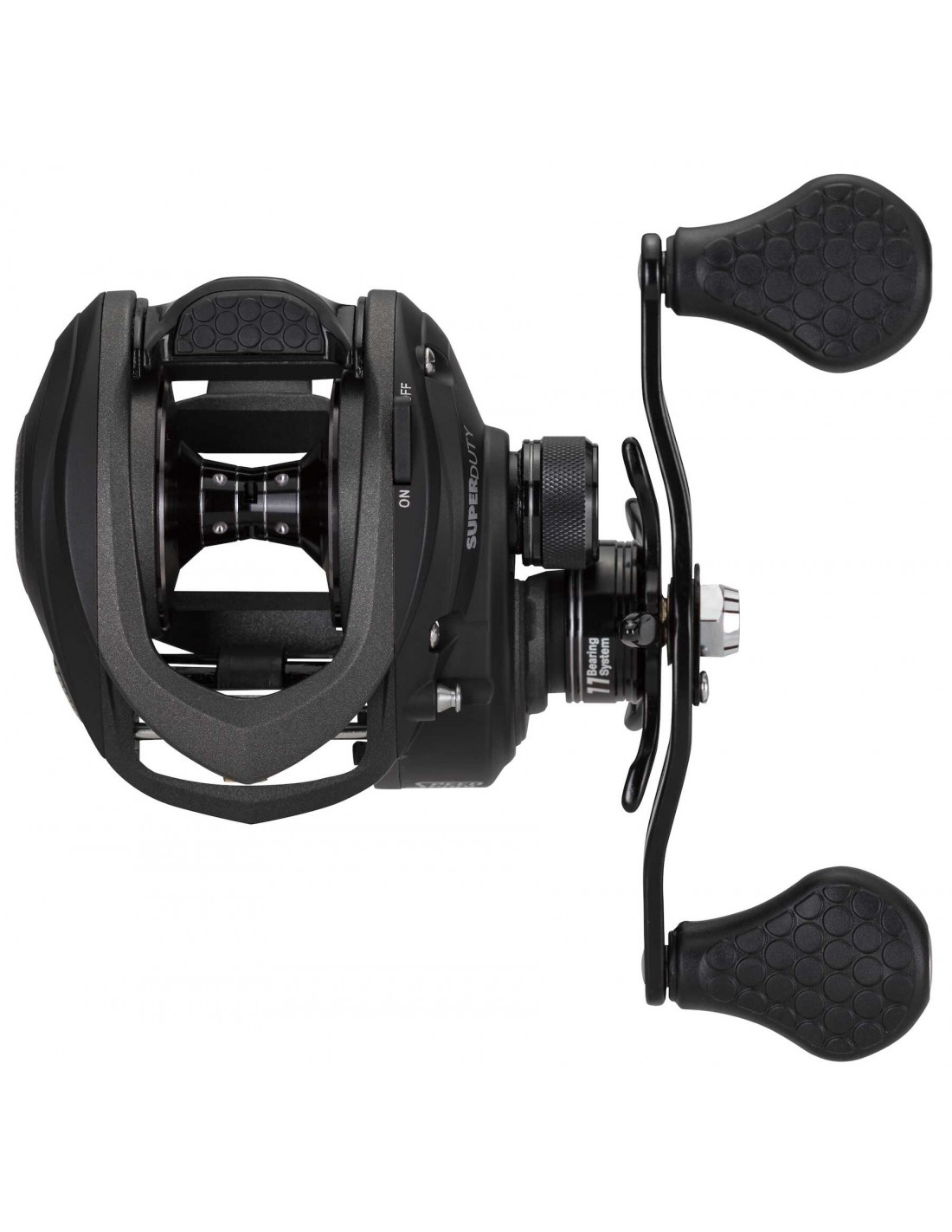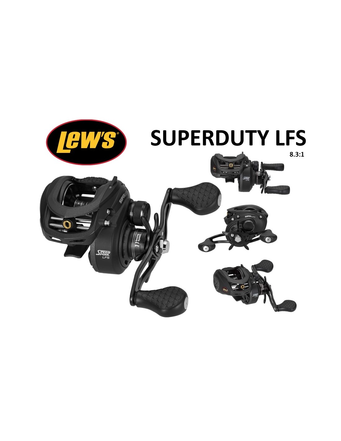 SuperDuty Baitcast Reel 2nd GenThe Super Duty’s one-piece aluminum frame and handle sideplate with a premium 11 bearing system, featuring stainless steel, double shielded bearings, lays the solid foundation for one of the strongest reels in the Lew’s lineup. Additionally, the P2™Super Pinion™ bearing supported pinion gear provides precise alignment and solid stability, resulting in smoother operation and extended gear life. The carbon fiber drag system provides 20lbs of drag power to put the angler in control of the fight, while the deep capacity 34mm spool is designed to withstand heavy braid to for strength in hooksets.