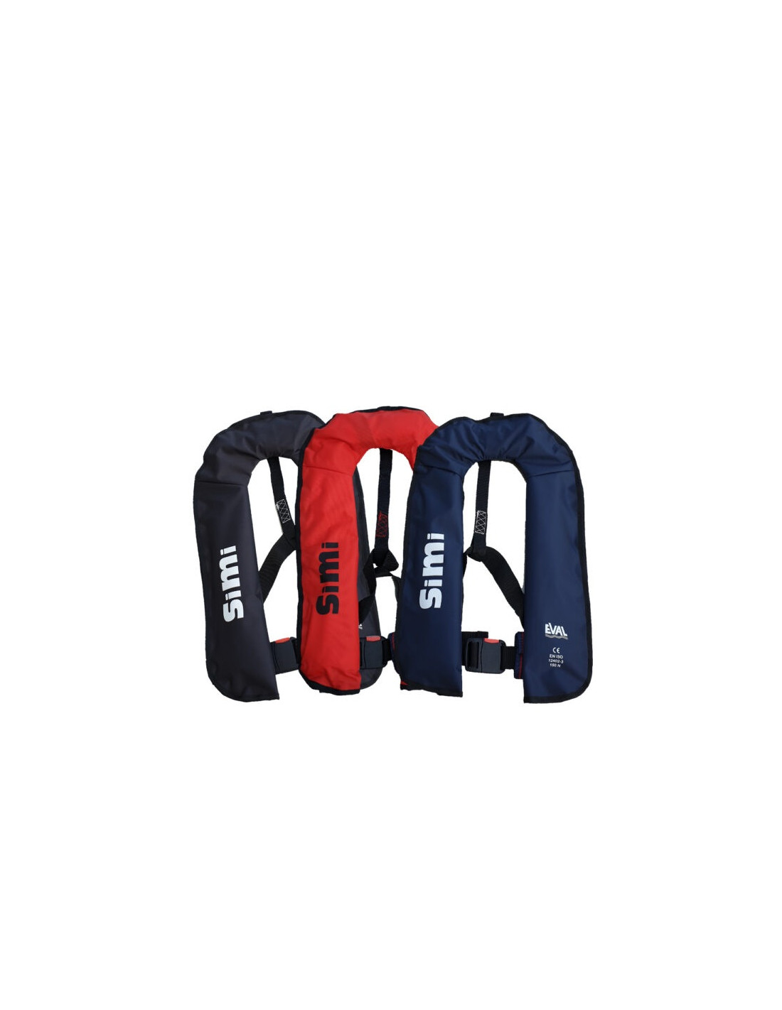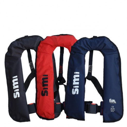 O novo Colete Salva-Vidas Insufl ável “SIMI” da EVAL é uma combinação de tamanho pequeno e conforto. É também um colete salva-vidas em conformidade com todos os requisitos do mercado e os regulamentos europeus, segundo a norma EN ISO12402-3 / 150N. Disponível em seis ti pos. A câmara insufl ável é fabricada num tecido amarelo disti nto e dobrada para o interior de uma cobertura de nylon adequada que fecha com Velcro, inclui um apito aprovado segundo a norma EN