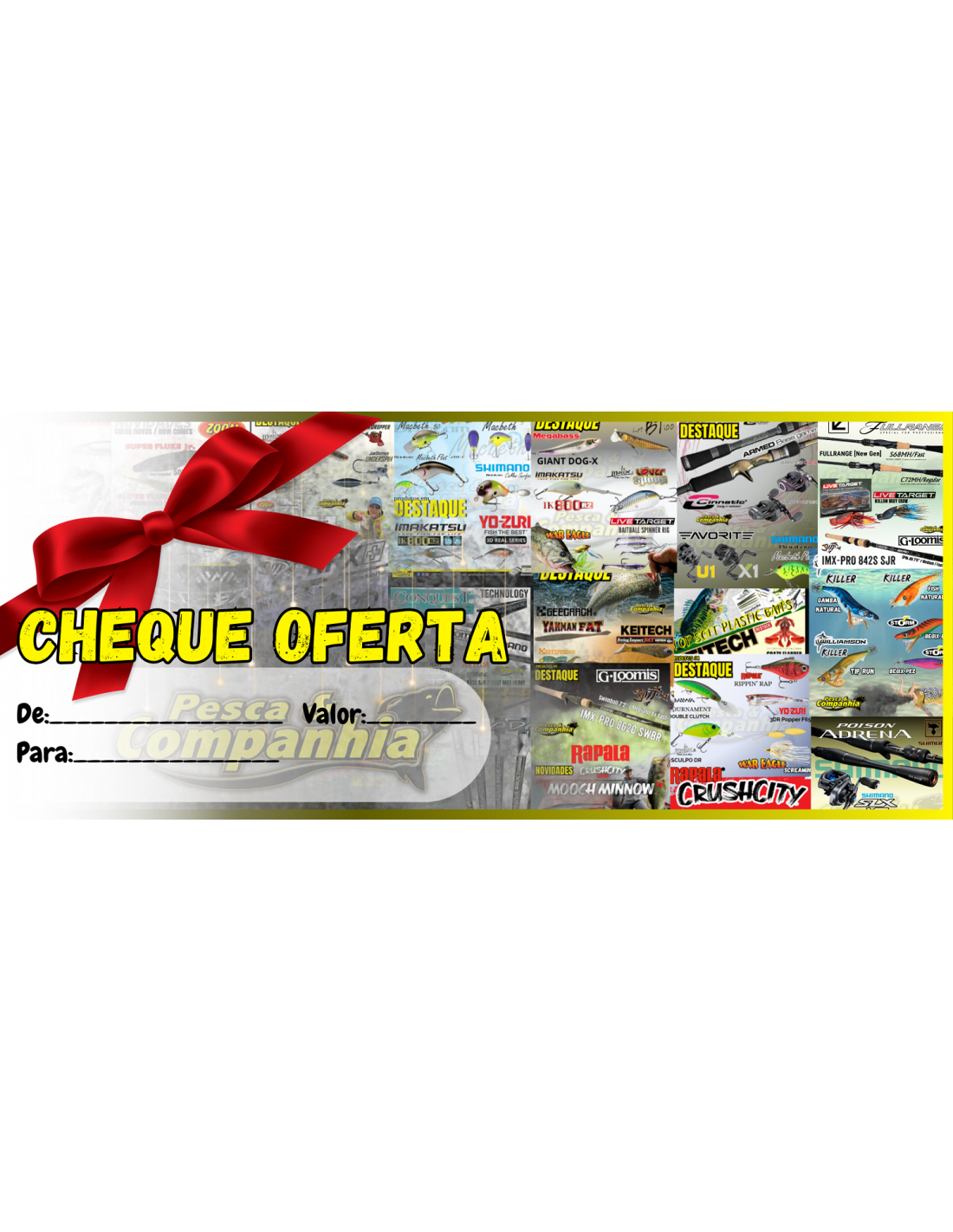 "Quando está indeciso ou não sabe o que oferecer, o cheque prenda da Pesca&Companhia é sempre uma ótima solução"Ao colocar este cheque oferta no seu carrinho de compras, indique-nos na caixa de mensagens qual o valor que quer colocar como oferta. |