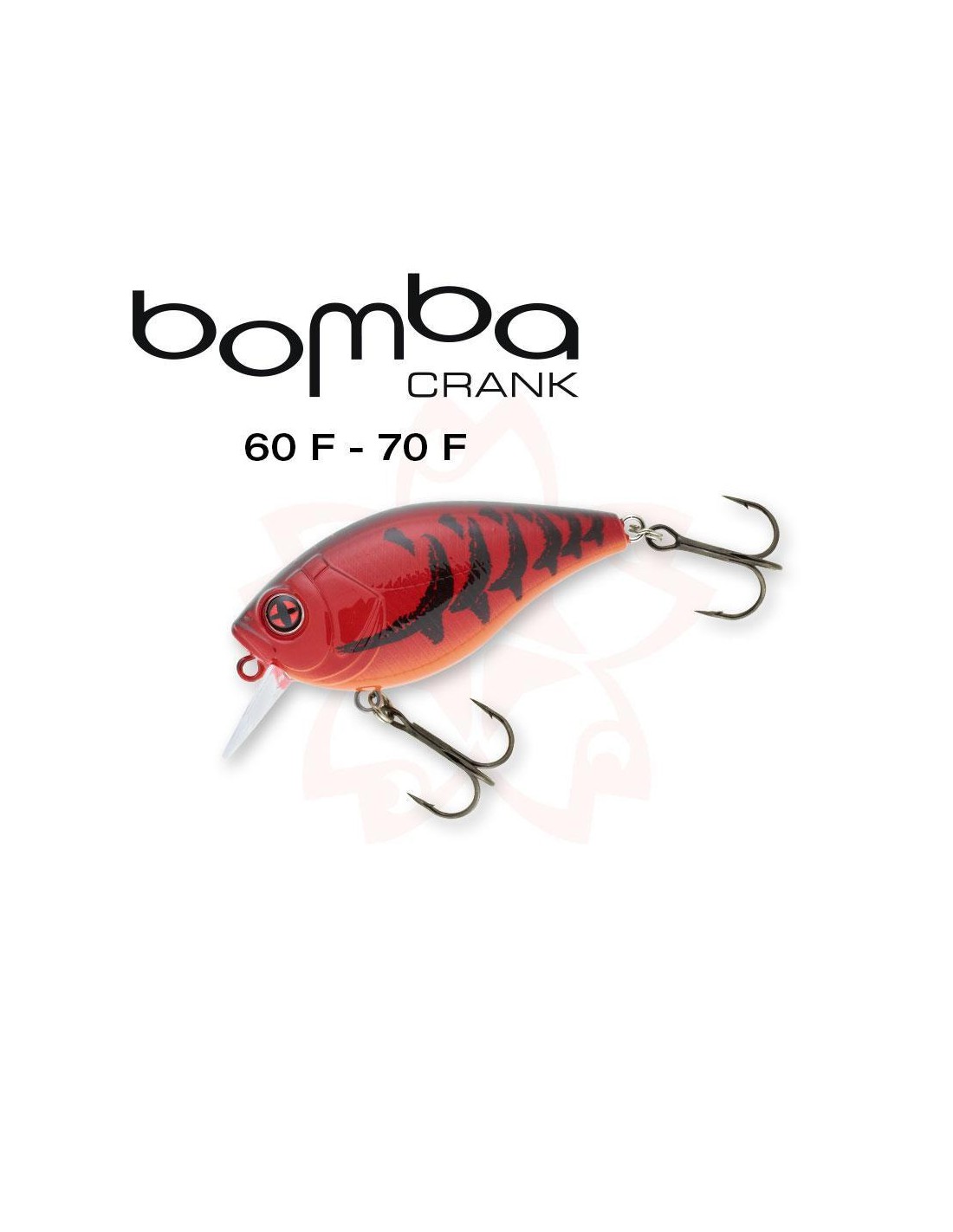 | Le Bomba Crank a été conçu pour les « power fishermen » qui souhaitent battre du terrain en un minimum de temps, sur des profondeurs de 2 à 3 m ou au-dessus d’herbiers immergés en pleine eau. Sa bavette carrée lui permet également de rebondir efficacement sur les obstacles durs sans s’y accrocher. Elle lui donne un wobbling ample et puissant (frétillement) qui facilite son repérage par les prédateurs, d’autant plus aisément d’ailleurs que sa signature sonore « basse fréquence » se propage très rapidement à grande distance. Doté d’un transfert de masse, il se lance loin et file droit au but, comme une flèche. La petite version est parfaite pour le bass et la perche, tandis qu’avec ses 70 mm, le gros Bomba a déjà une place de choix dans nos boîtes à brochet.