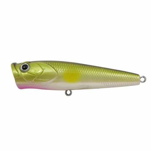 | Burpy Popper is a surface lure recommended for fishing predatory fish in the warm season when they feed close to the surface of the water. Due to the large mouth opening, the lure easily produces the typical pop & splash noise on the surface of the water, and predators are attracted even from long distances due to the strong explosions. The wobbler is equipped with Mustad TG77NP-BN number 10 anchors. Specifications: Wobbler Type: Topwater Number of anchors: 2 Anchor size: 10 Length: 6.5cm Weight: 6.3g |