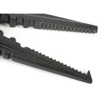 Descrição do Produto O alicate multifuncional SG MULTI PLIERS é fabricado inteiramente em aço inoxidável, com um elegante acabamento em titânio preto. O tratamento especial contra ferrugem e corrosão aumenta sua resistência ao sal, garantindo força e durabilidade ao longo do tempo. Graças às duas pinças, é possível abrir facilmente anéis de pressão grandes e crimpar terminais de aço e nylon sem esforço. O cabo ergonômico emborrachado garante uma pegada firme e confortável. As lâminas de tungstênio permitem cortar linhas trançadas e fluorocarbono com precisão e limpeza. Por fim, a prática trava de segurança permite armazenar o alicate com total segurança. TAMANHO P: 160 mm (6,3 pol.) TAMANHO M: 190 mm (7,5 pol.) |