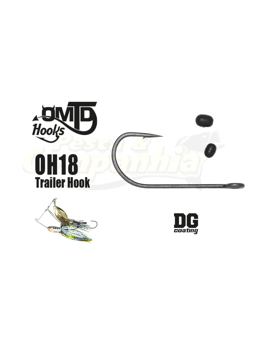 TRAILER Hook Anzol auxiliar completo com sistema de fixação, concebido para ser aplicado em spinnerbaits, buzzbaits e outras amostras de anzol único para melhorar a sua capacidade de fisgada. A montagem do anzol auxiliar é rápida e simples, graças às contas de retenção que se ajustam perfeitamente ao olho do anzol, mantendo-o firme no lugar. O acabamento especial DG COATING garante uma elevada penetração e um aspeto suave e mate.