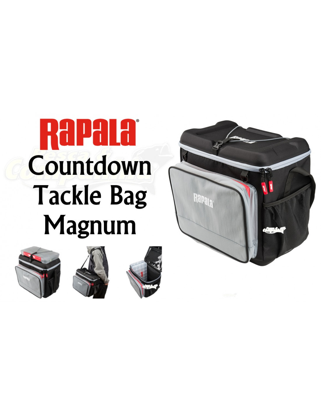 | Quando você precisa de capacidade máxima, escolha a Bolsa de Pesca CountDown Magnum. Com: material impermeável com fundo e tampa em EVA moldado à prova d'água, suporte para bandeja de pesca na tampa com bolso transparente com zíper, bolso frontal duplo com fixação rápida para ferramentas + argolas em D + bolso com zíper para alimentador de linha e bolsos organizadores, alça de ombro acolchoada e ajustável que pode ser transformada em uma alça de mão, acomoda 7 bandejas de pesca internas tamanho 3700 com espaço para 1 na parte superior.