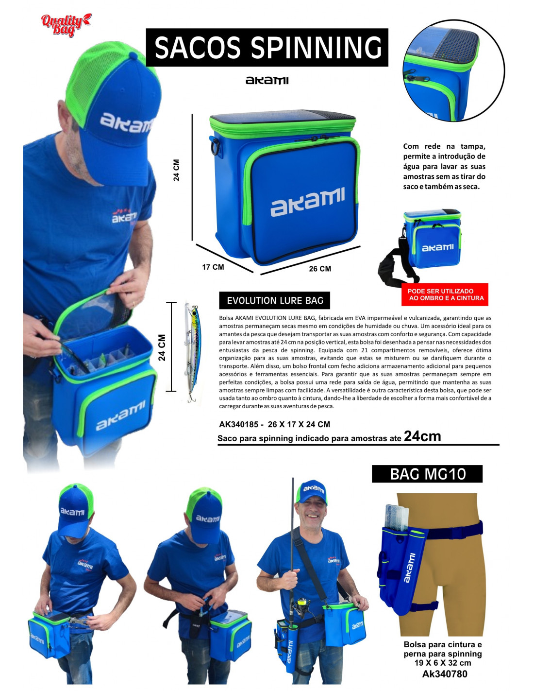 | Bolsa AKAMI EVOLUTION LURE BAG, fabricada em EVA impermeável e vulcanizada, garantindo que as amostras permaneçam secas mesmo em condições de humidade ou chuva. Um acessório ideal para os amantes da pesca que desejam transportar as suas amostras com conforto e segurança. Com capacidade para levar amostras até 24 cm na posição vertical, esta bolsa foi desenhada a pensar nas necessidades dos entusiastas da pesca de spinning. Equipada com 21 compartimentos removíveis, oferece ótima organização para as suas amostras, evitando que estas se misturem ou se danifiquem durante o transporte. Além disso, um bolso frontal com fecho adiciona armazenamento adicional para pequenos acessórios e ferramentas essenciais. Para garantir que as suas amostras permaneçam sempre em perfeitas condições, a bolsa possui uma rede para saída de água, permitindo que mantenha as suas amostras sempre limpas com facilidade. A versatilidade é outra característica desta bolsa, que pode ser usada tanto ao ombro quanto à cintura, dando-lhe a liberdade de escolher a forma mais confortável de a carregar durante as suas aventuras de pesca. |