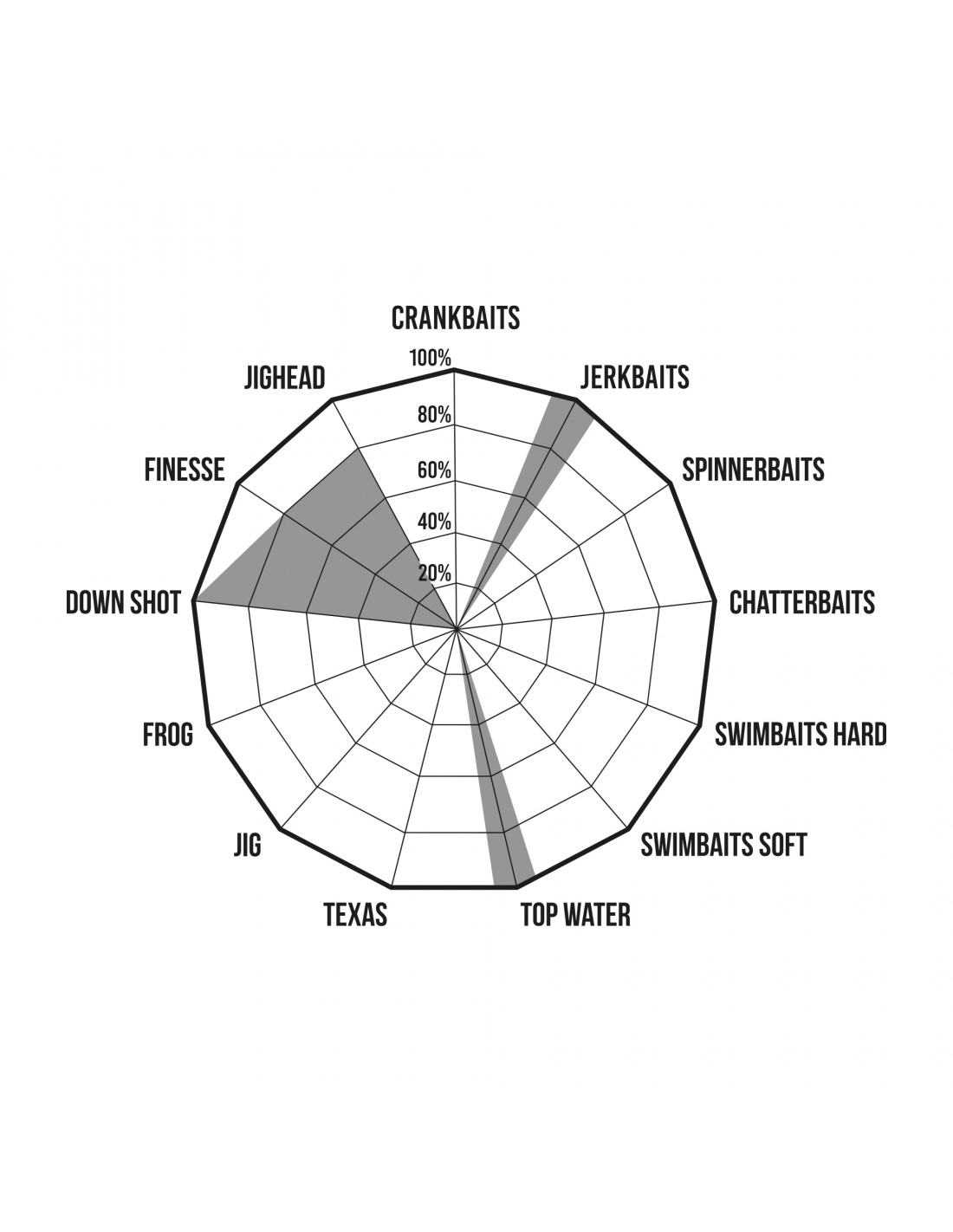 - Alta Versatilidade: Uma das varas mais versáteis da série, adequada para pesca finesse e abordagens leves, assim como jerkbait e topwater.