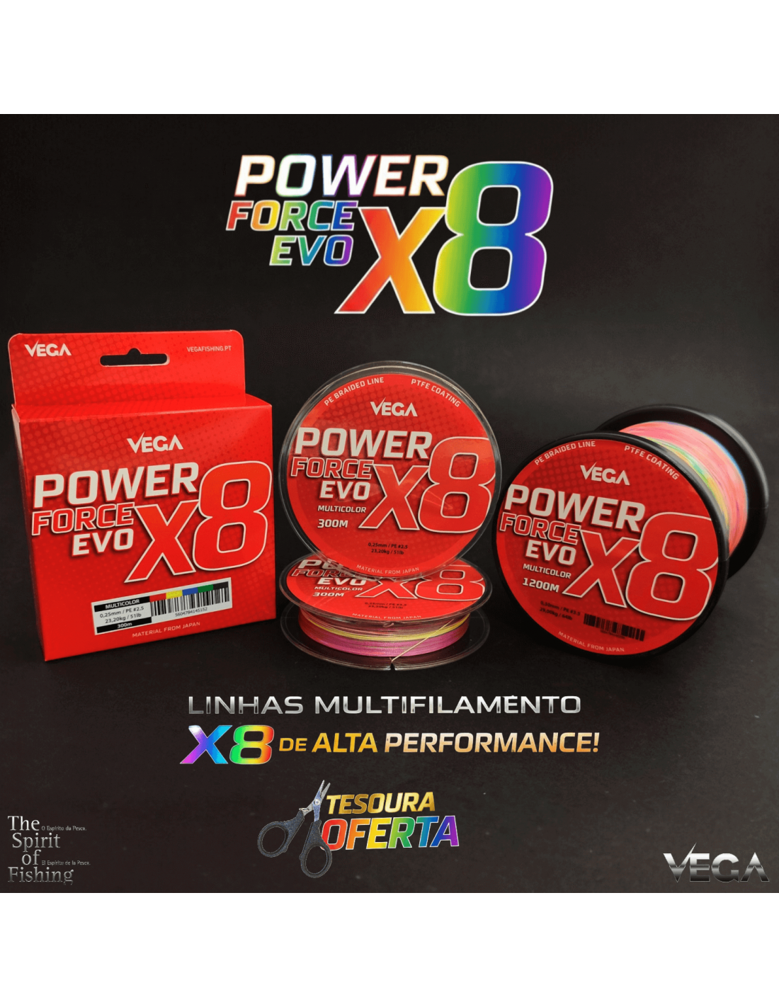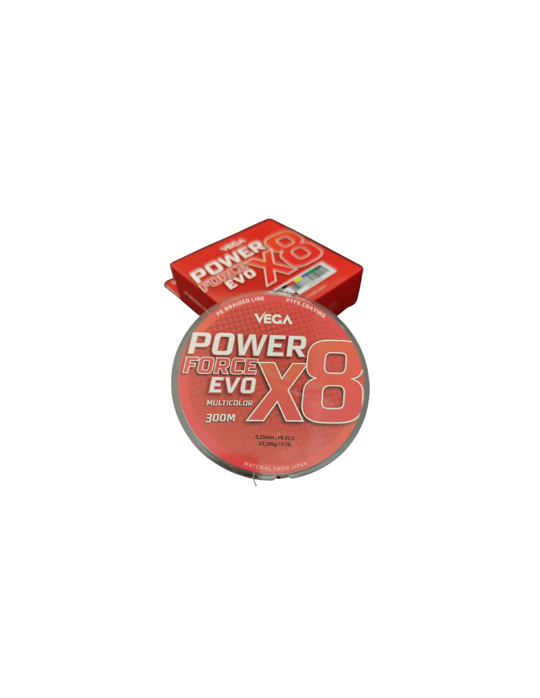 A VEGA apresenta o novíssimo POWER FORCE EVO X8, um multifilamento de perfil redondo, suave e com diâmetros reais, algo muito importante na classe de linhas multifilares. O seu revestimento PTFE aumenta a sua impermeabilidade e absorção, aumentando ainda a sua resistência à abrasão. Uma linha ideal para bobinar os carretos em modalidades como o Spinning, Boia, Chumbadinha, Surfcasting, Buldo, Trolling, Pesca embarcada e a pesca em águas interiores.