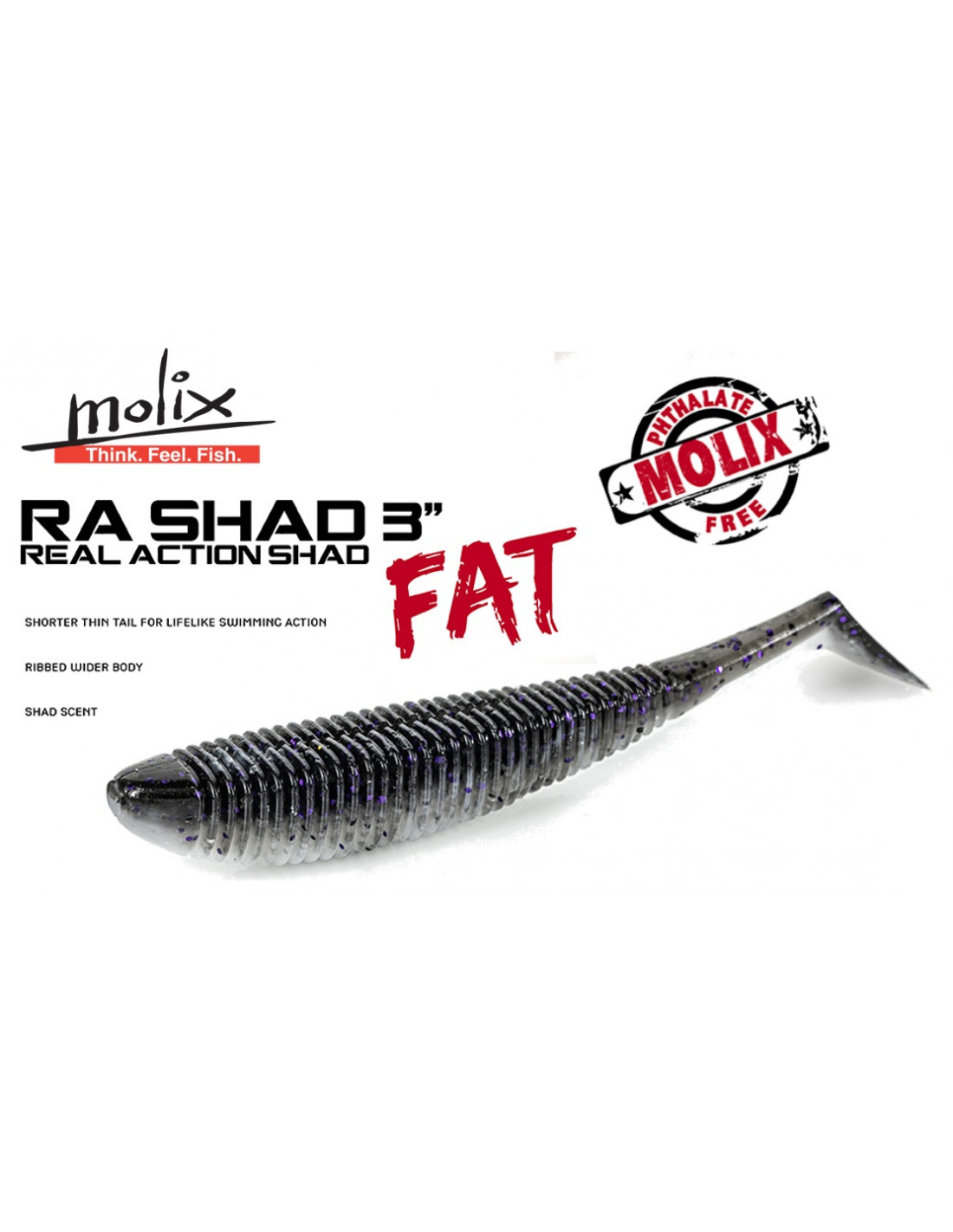 Descrição do Produto A isca artificial Molix RA Shad Swimbait é uma isca de plástico macio superdensa, enriquecida com uma fórmula com aroma de peixe para maior atração dos peixes. A versão "Fat" aumenta seu volume, tornando-a mais visível apesar do seu tamanho pequeno. Muito durável, ela gera uma ação de natação extremamente natural – independentemente da velocidade de recolhimento – graças à sua cauda fina e corpo com ranhuras. Pode ser usada com ou sem peso, ou em uma cabeça de jig. A Molix RA Shad também é uma excelente isca para qualquer montagem estilo Umbrella. Comprimento: 7,5 cm (3 pol.) Embalagem: 6 unidades |